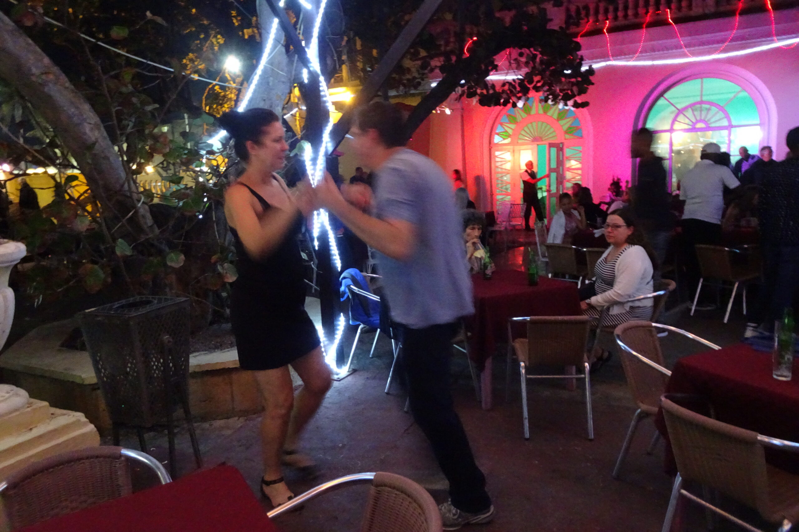 After dinner on a terrace with a salsa band playing, we got an old car taxi to drive along the Malecon to 1830 Club, a well known outdoor salsa venue, in the Miramar area of town.